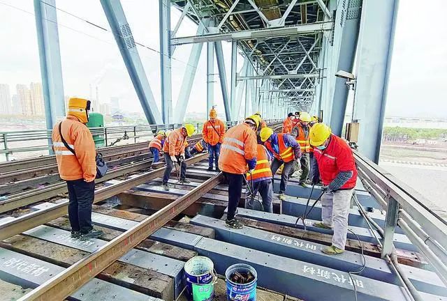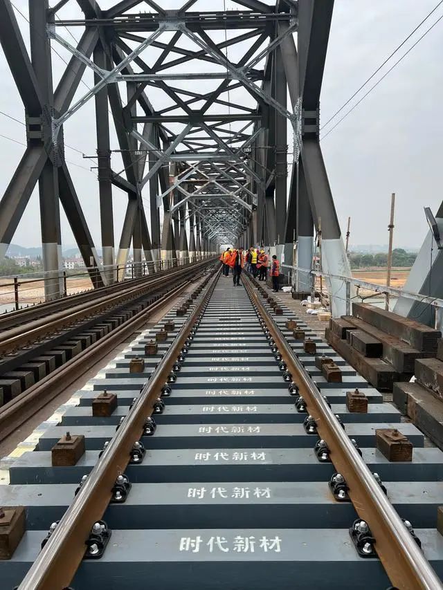 京九铁路九江长江大桥首次更换复合材料轨枕 企业供图