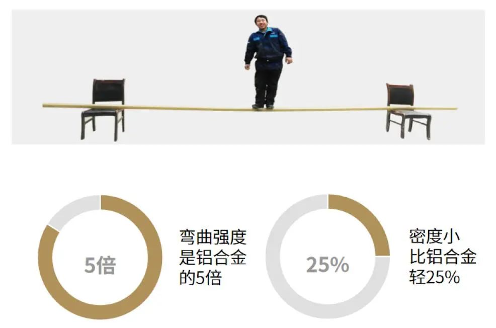 本型材密度小,为2.1g/cm³,比铝合金轻25%,但弯曲强度是铝合金的5倍,高强度使得其型材截面比铝合金小10%以上,可以做高通透门窗,大大提高了居家视野。还可用于其他有减重需求的新能源汽车行业,高铁、地铁的车厢上作为受力构件,提高设备性能。