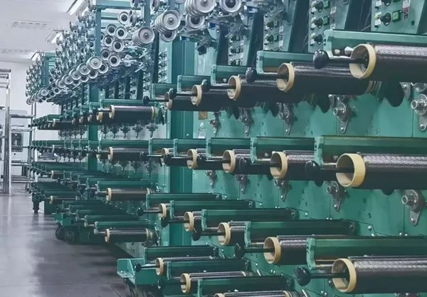 时至今日,在中国建材车间,自动化生产线正开足马力生产,一束束原丝向远处有序延伸,经过预氧化、低温碳化、高温碳化、烘干等工序,被缠绕成一轴轴高性能黑色碳纤维。