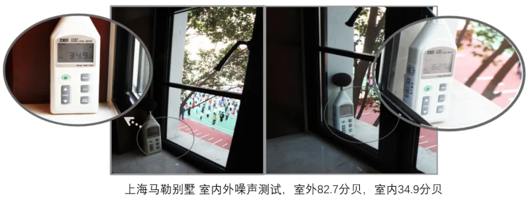 聚氨酯复材的膨胀系数为0.64(10-5K-1),与混凝土膨胀系数最为接近,稳定性高且耐水泥腐蚀,制成的门窗历经冬夏几十度的温差,窗体与墙体变形尺寸差极小,避免窗框与墙体因热胀冷缩差异而产生缝隙,进一步提高了门窗的密封性和保温隔音性能。因此聚氨酯复材系统窗超级隔音,隔声性能≥42dB。