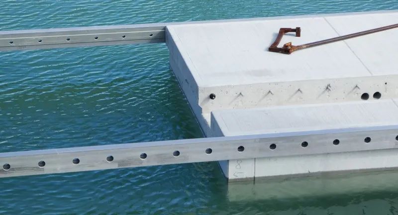 waler是安装在码头部分侧面的结构梁,跨越多个混凝土浮子,将它们固定在一起。Waler在码头建设中发挥着关键的结构作用。